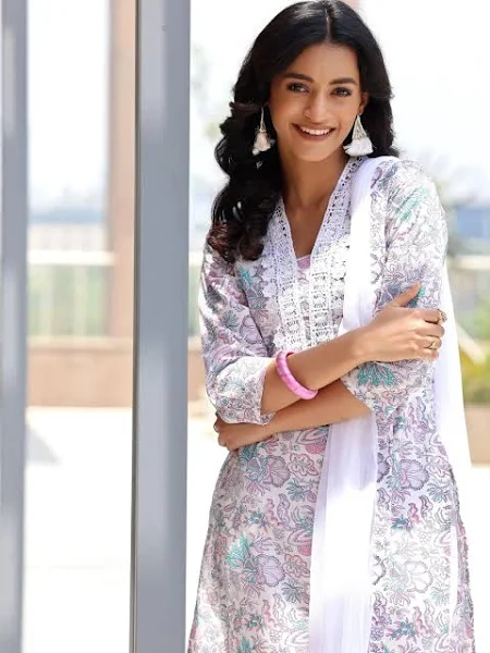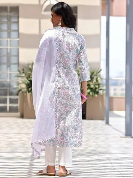 The Floral Kurta, Pant, and Dupatta Set is typically available in a variety of sizes, ranging from XS to 5XL. This wide range ensures a comfortable and flattering fit for all body types.