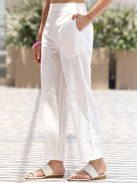The pants in this set typically feature a straight-cut design, providing a comfortable and tailored fit. The straight-cut pants offer a modern look, complementing the relaxed yet chic vibe of the kurta. In some cases, palazzo or cigarette pants may be included for a more contemporary or boho-inspired style.-